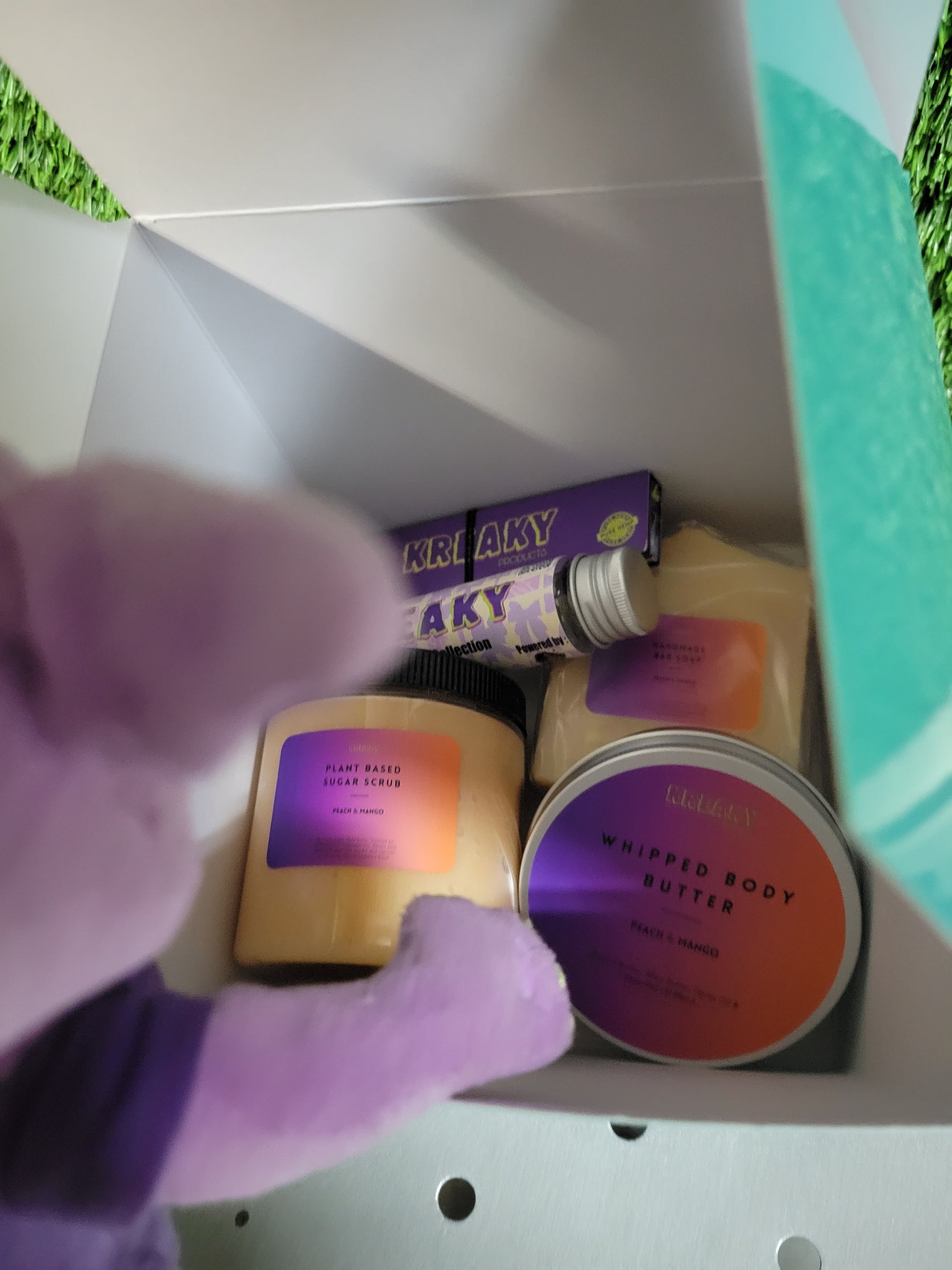 Indulge in a luxurious spa experience anytime, anywhere with our portable body kit. With a raw sugar scrub, whipped body butter, bath bomb, and roll included, relax and escape from the stress of daily life. Customizable with hand-selected scents, treat yourself to the ultimate pampering session. (Pun intended.)